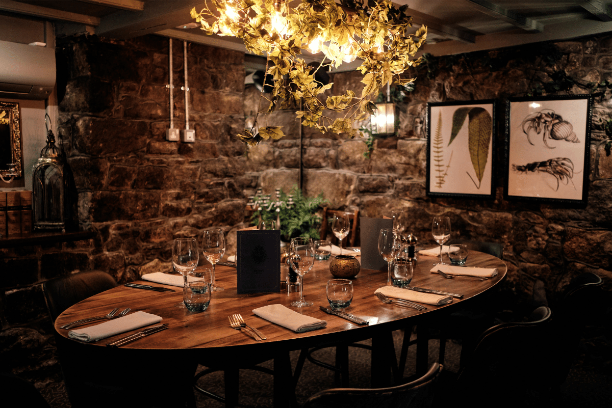 Wine Cellar: A cosy, atmospheric room accommodating 14 guests, ideal for a unique and intimate dining experience.