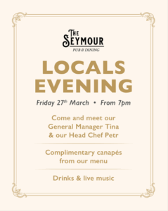 Join us for Locals Evening on Friday 27th March from 7pm – a relaxed night dedicated to our wonderful local community.